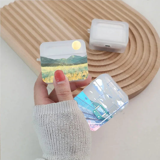 Korean Anime Sunset Scenery Print Earphone Case For Apple Air Pro 3 Transparent Cute Cover Soft Coque Airpods 2 1 4th Accessorie