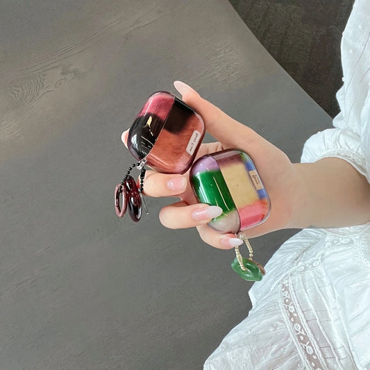 Stylish Maillard Collision Color Irregular Pattern Love Heart Flower Pendant Earphone Case Cover for AirPods 1 or 2 3 4 Pro 2