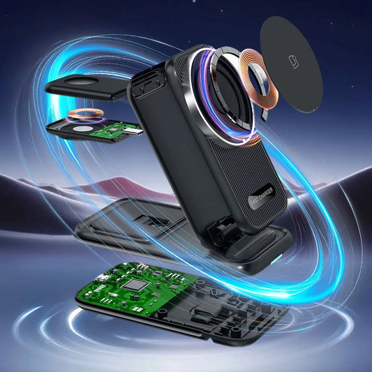Magnetic Wireless Charger Fast Charging Station 3 In 1 Foldable Stand For iPhone17 16 15 14 13 12 Apple Watch S9 8 7 Airpods Pro