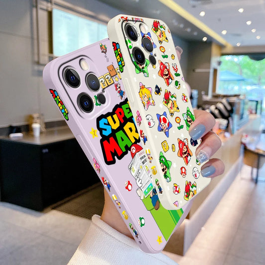 S-Super M-Marios B-Bros Cute Liquid Left Rope For Apple iPhone 15 14 13 12 11 XS XR X 8 7 SE Pro Max Plus Mini Funda Phone Case