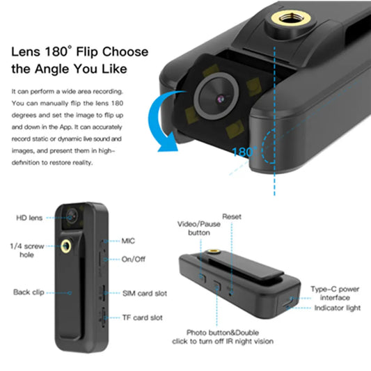 4G Wireless Mini Camera 4K High Definition Phone Remote Video Recorder Worn Police Small Body Cam Night Vision DV Camcorder