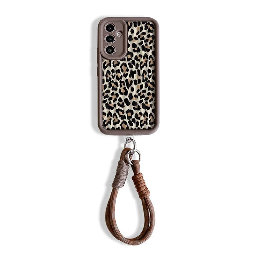 Leopard Wrist Chain Lanyard Case for Samsung S25 S24 S23 S22 S21 Plus Ultra S20 FE A50 A05 11 30 20 Soft TPU Phone Cover