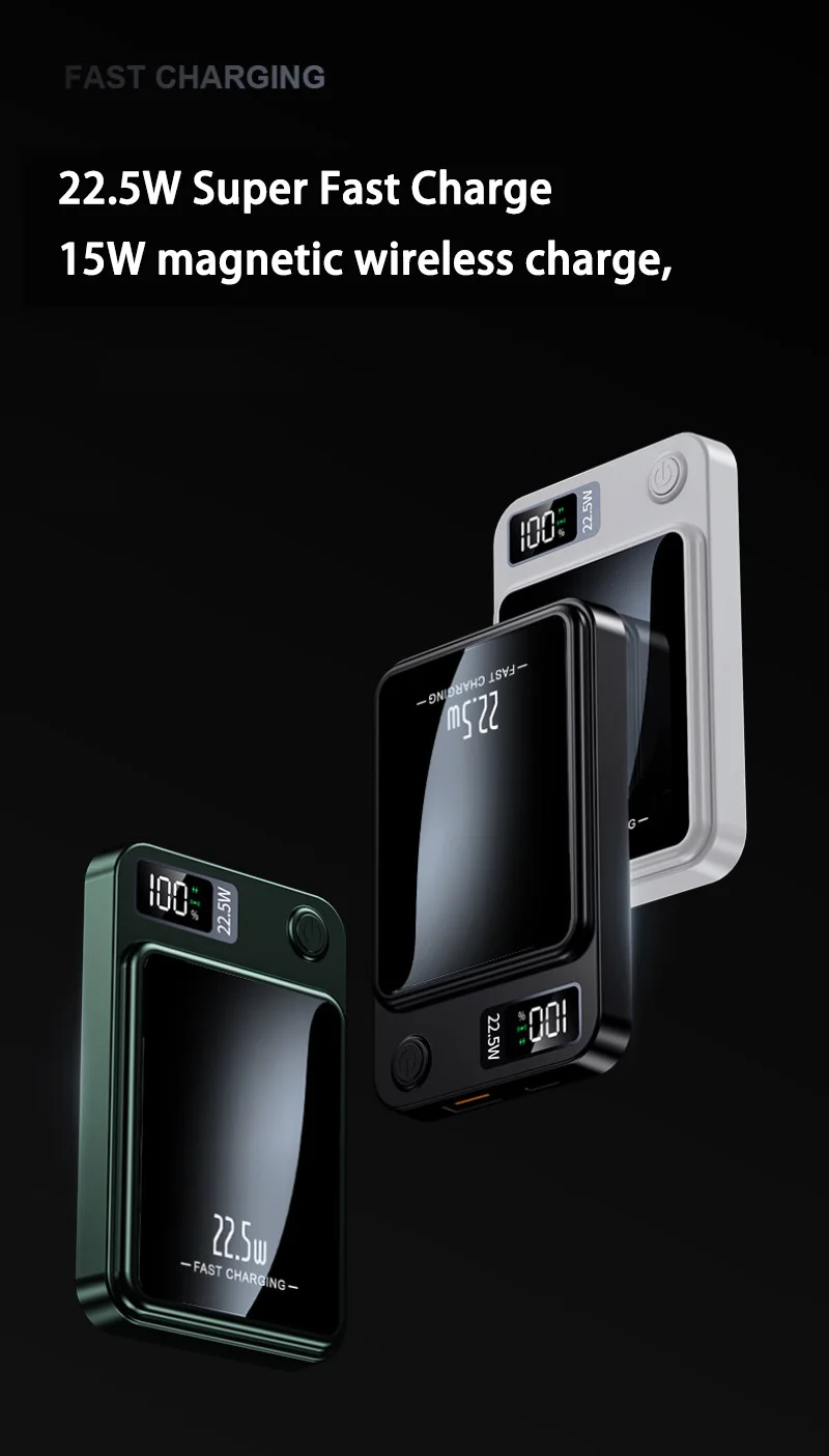 30000mAh Magnetic Power Bank 22.5W Fast Charging Portable External Battery Ultra Thin Safe Wireless For iPhone Huawei Samsung