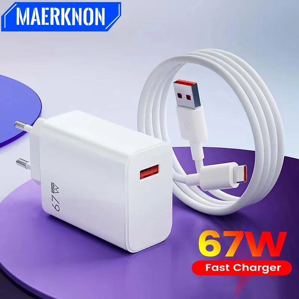 67W USB GaN Charger Fast Charging EU/US Plug Phone Power Adapter For iPhone Samsung Xiaomi Huawei 10A Type C Quick Charge Cable
