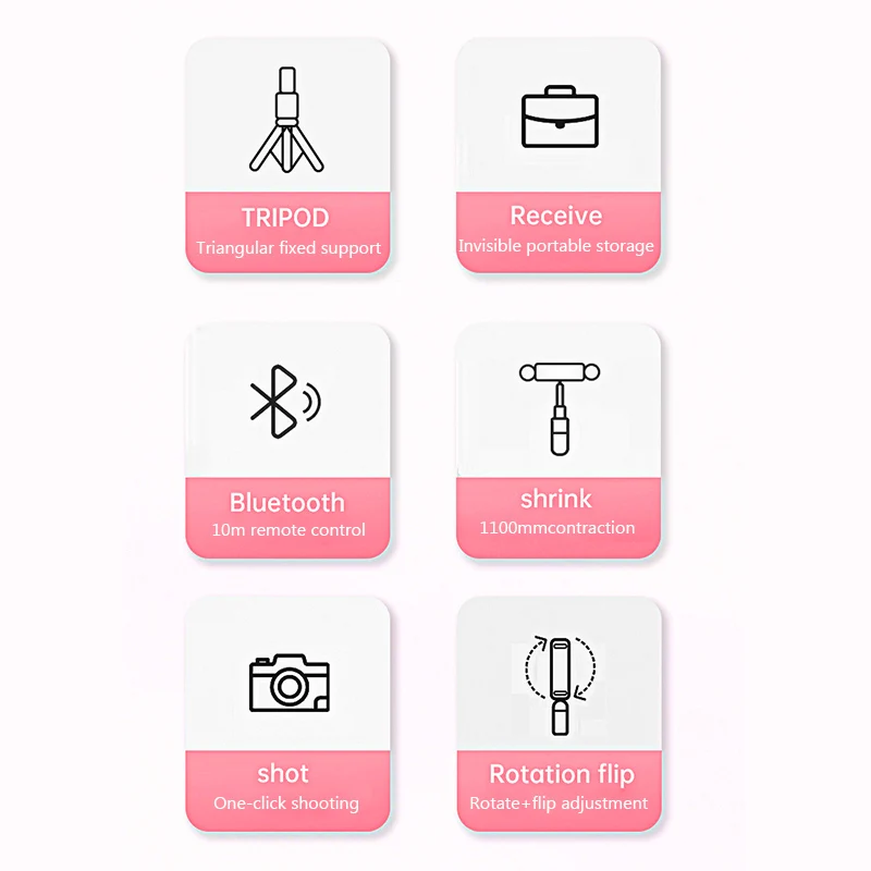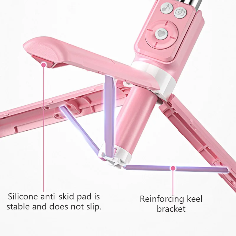 B12 Wireless Selfie Stick Stand with Light Bluetooth Remote Extendable Tripod for iPhone Mobile Phone Tiktok Live Streaming