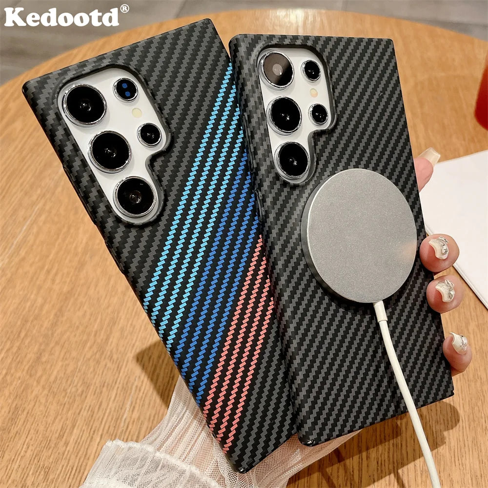 Carbon Fiber Texture Armor Magnetic For Magsafe Case For Samsung S25 S24 S23 S22 Note 20 Ultra 10 Plus A56 A16 A55 Hard PC Cover
