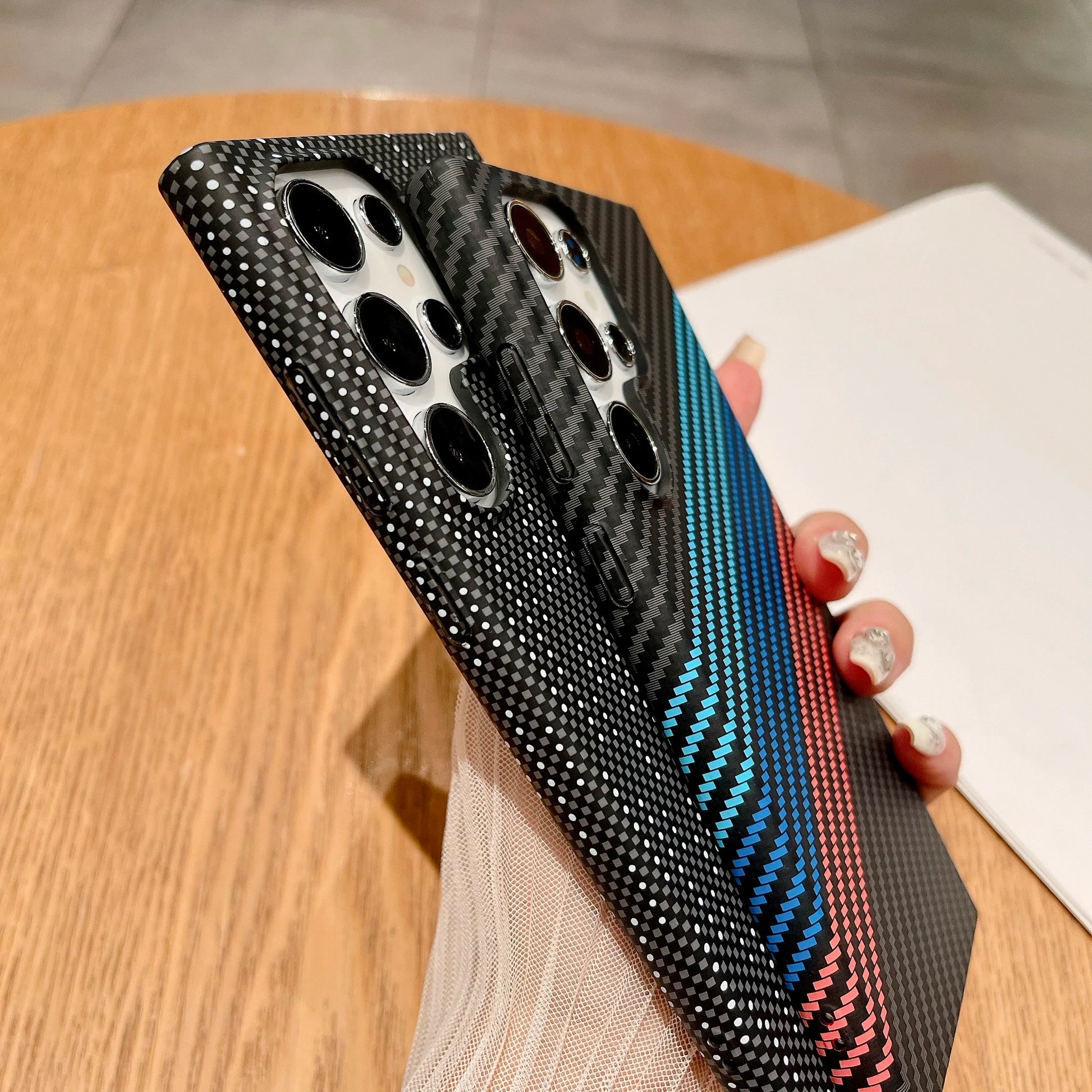 Carbon Fiber Texture Armor Magnetic For Magsafe Case For Samsung S25 S24 S23 S22 Note 20 Ultra 10 Plus A56 A16 A55 Hard PC Co