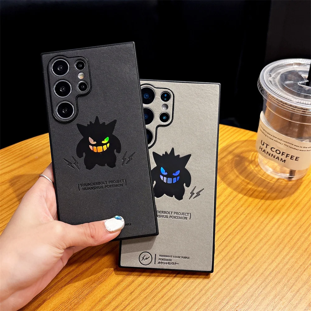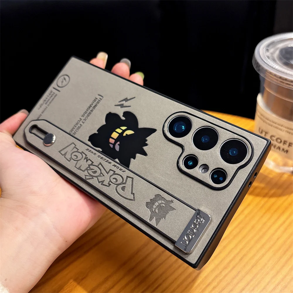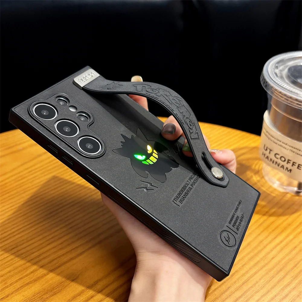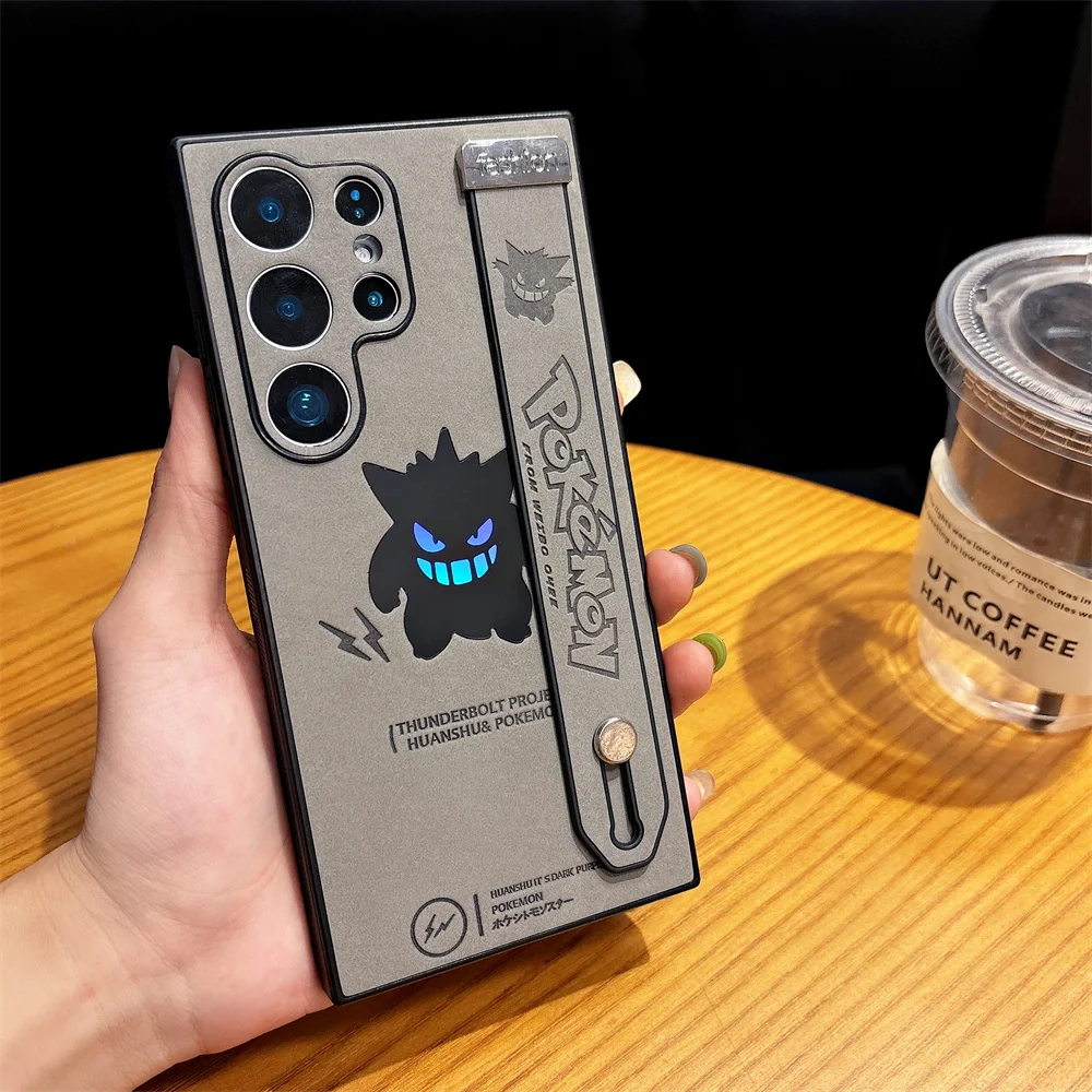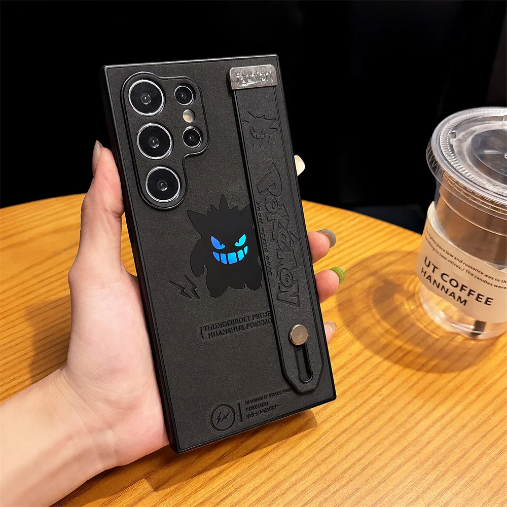 Cartoon Gengar Leather Phone Case with wristband For Samsung Galaxy S25 S24 S23 S22 Ultra Plus Shockproof Cover