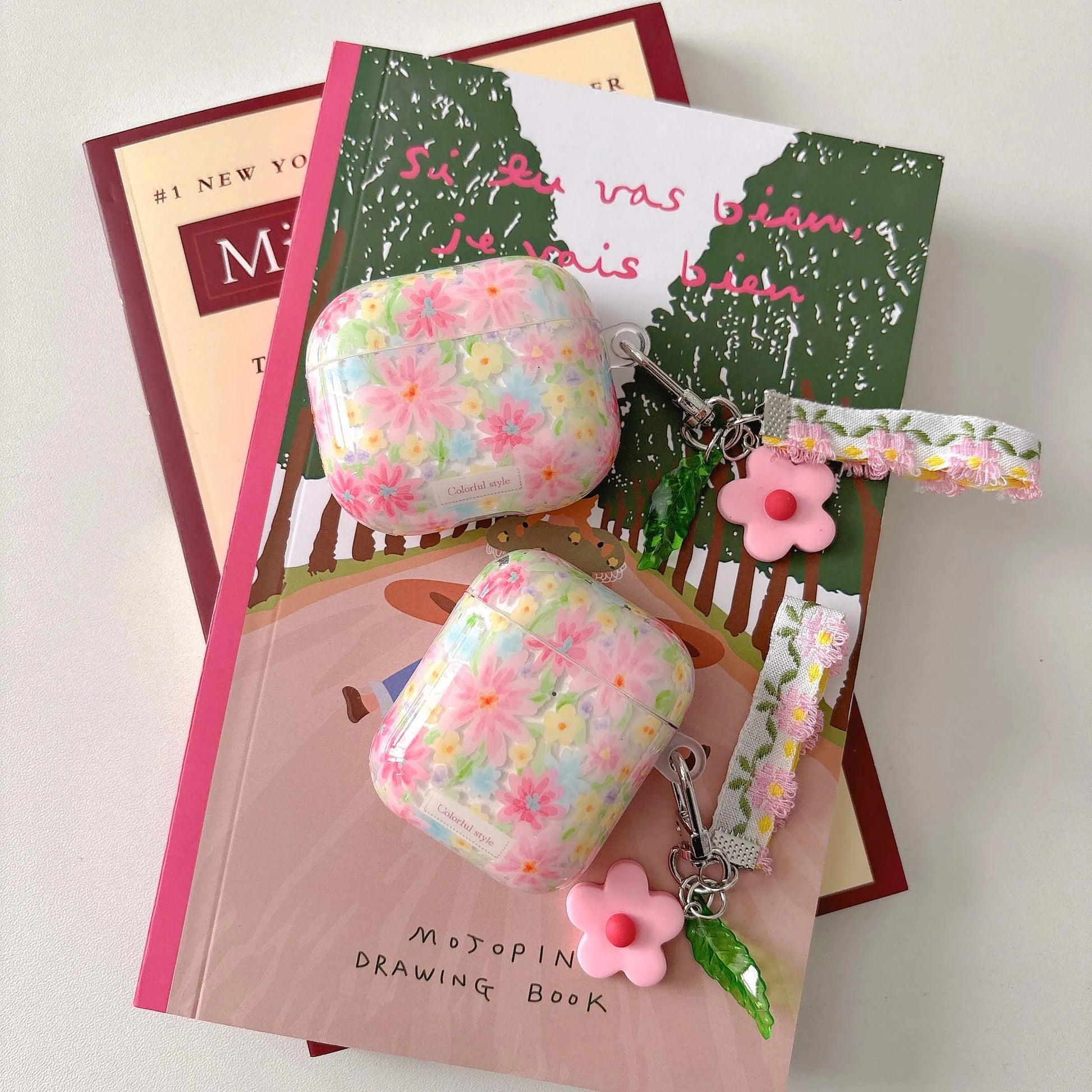 Colorful ins flower 3D pendant imd earphone case wireless bluetooth charging box for apple airpods 3 4 2 1 pro 2nd cover