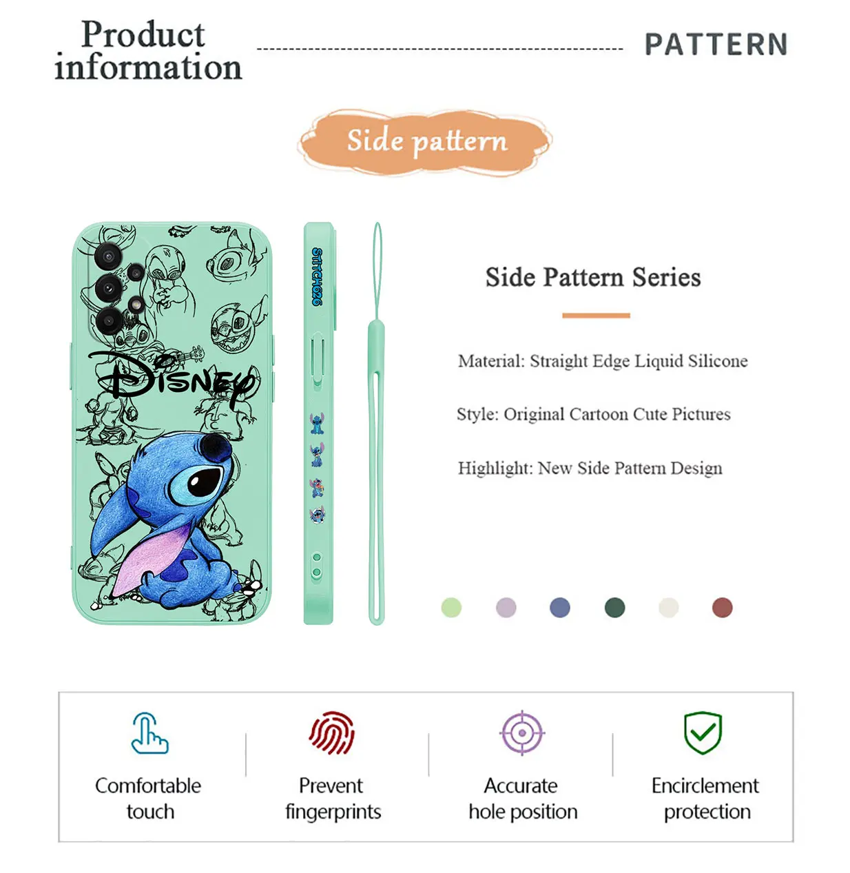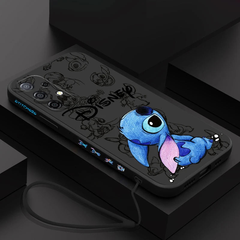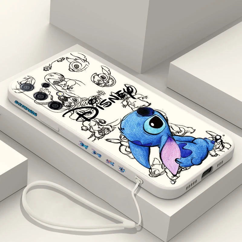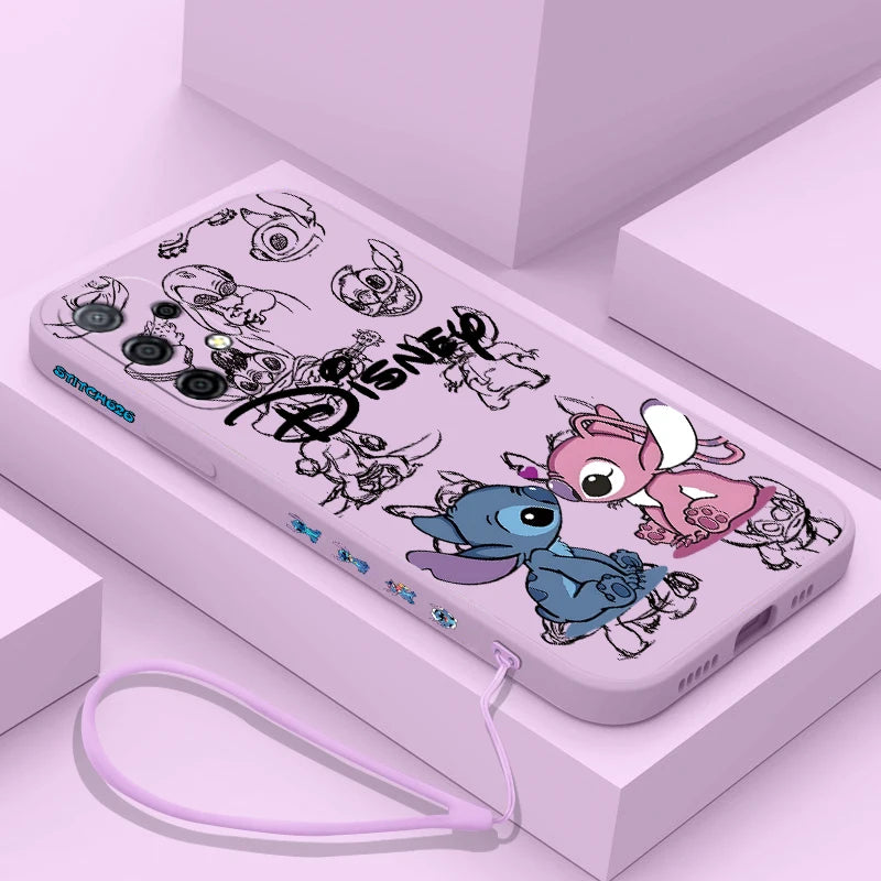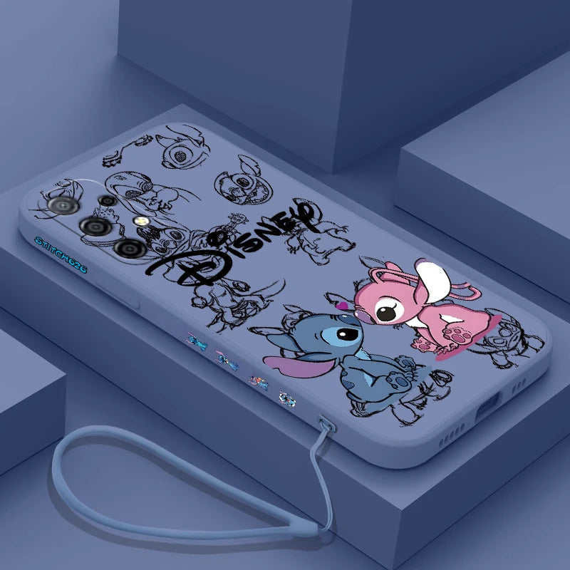 Disney Super Cute Stitch Case For Samsung Galaxy S24 S23 S22 S21 S20 S10 Note 20 Lite Ultra Plus FE 4G 5G Cover With Hand Strap