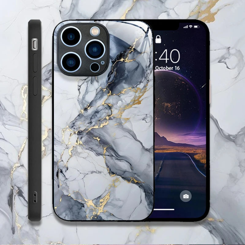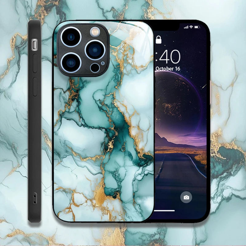Fashion Colorful Marble Phone Case for IPhone 11 12 13 14 15 16 Pro Max Mini X XR XS 7 8Plus SE2 Shockproof Tempered Glass Cases
