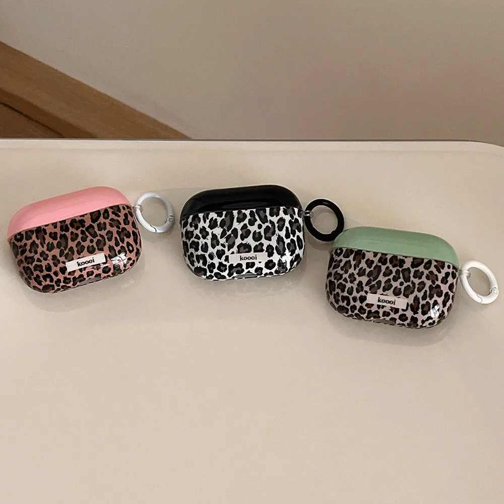 Fashion Contrast Leopard Earphone Case For Airpods 4 Pro 2 Hook Soft Protective Cover For Airpods 3 2 1 3rd Generation Shell