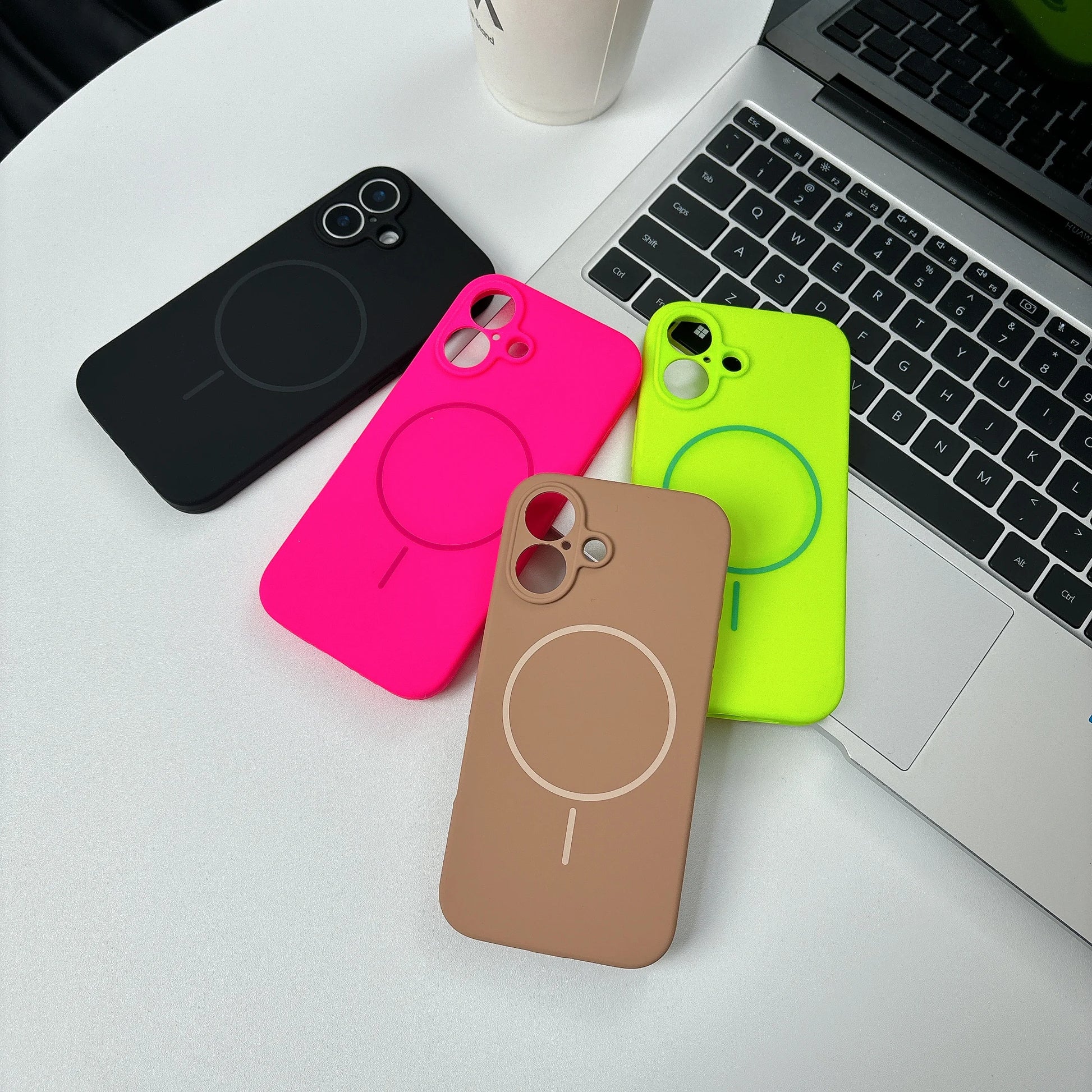 Fashion Fluorescent Silicone Magnetic for Magsafe Case For iPhone 17 Air 16 15 14 Plus 13 12 Pro Max Wireless Charge Candy Cover