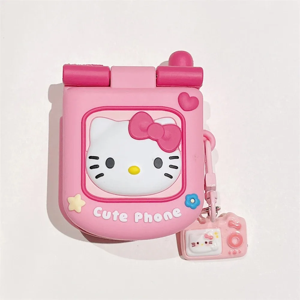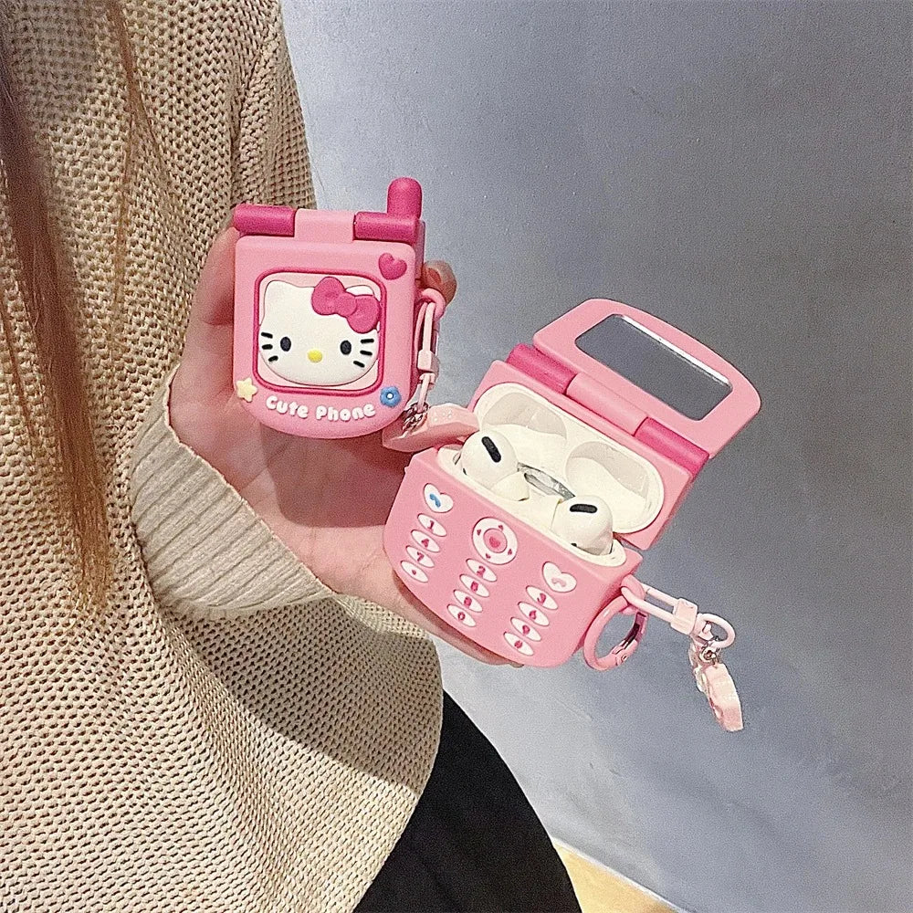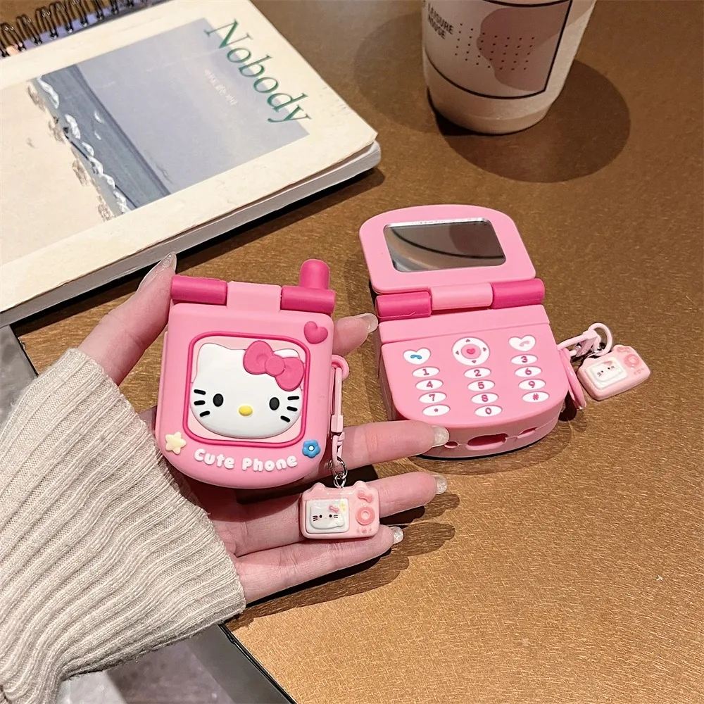 For AirPods 4 3 2 1 Pro Pro2 Earphone Case 3D Hello Kitty Retro CellPhone Silicone Cartoon Headphone Box With Mirror KT Cover