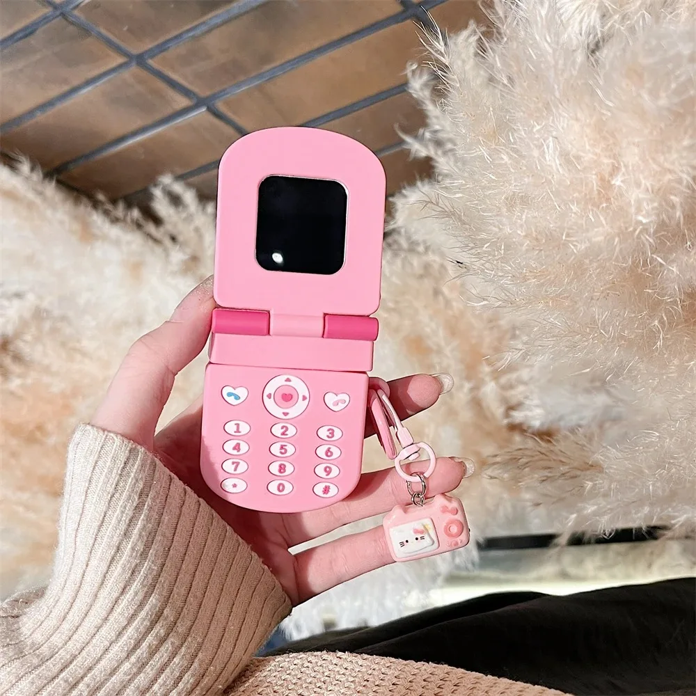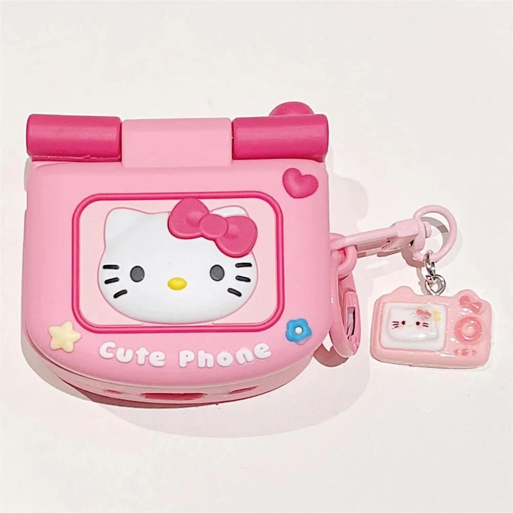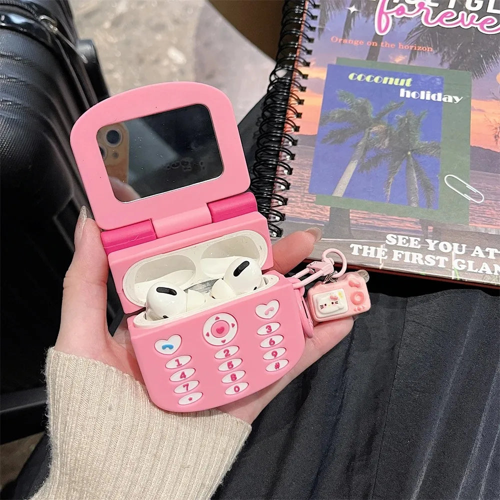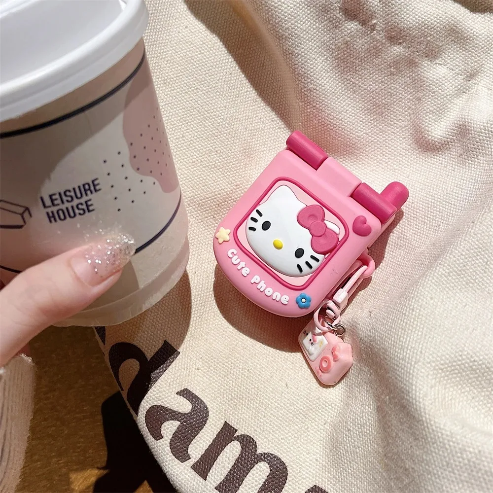 For AirPods 4 3 2 1 Pro Pro2 Earphone Case 3D Hello Kitty Retro CellPhone Silicone Cartoon Headphone Box With Mirror KT Cover