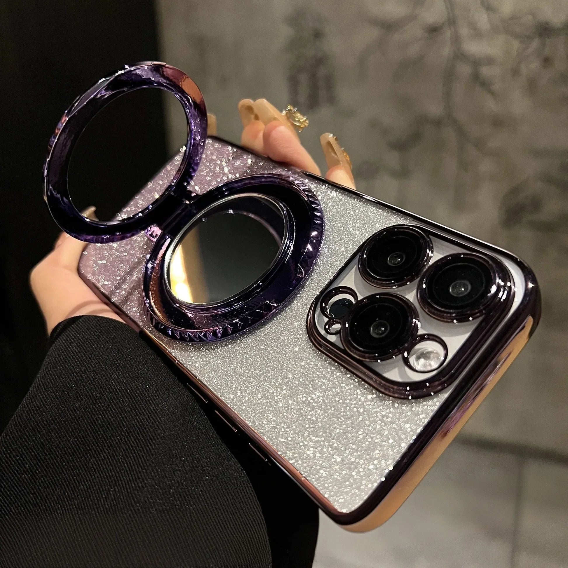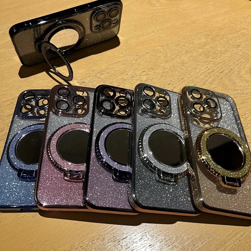 for Magsafe Glitter Mirror Gradient Case for iPhone 15 14 13 11 12 16 17 Pro Max X Xr Xs 8 7 Plus Bracket Stand Make Up Plating Cover