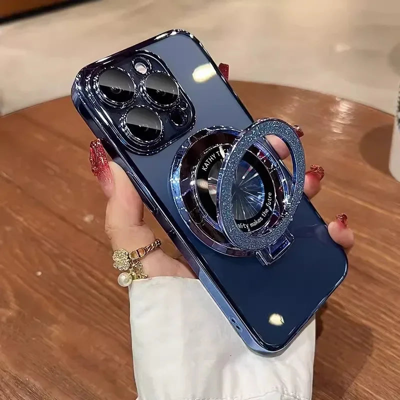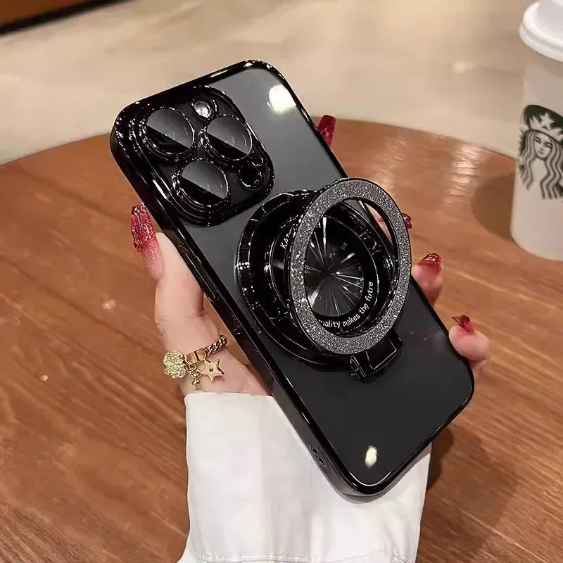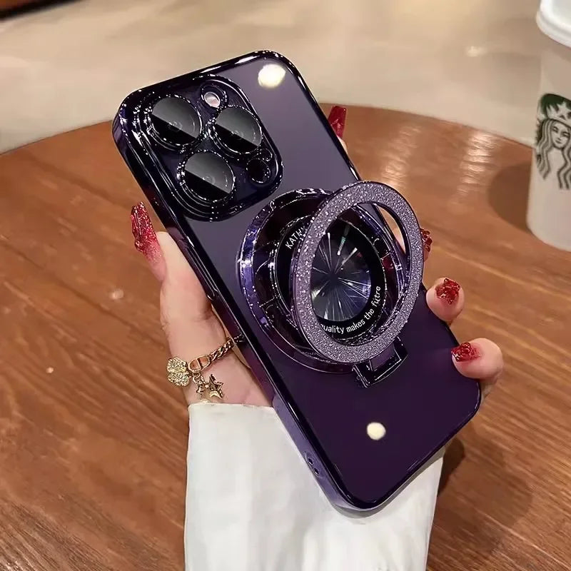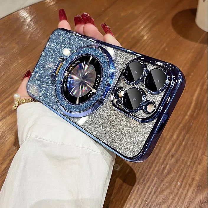 Glitter for Magsafe Bracket Case for iPhone 16 15 14 13 12 17 Pro Max 11 X Xr Xs 7 8 Plus SE 2 Magnetic Stand Holder Gradient Cover