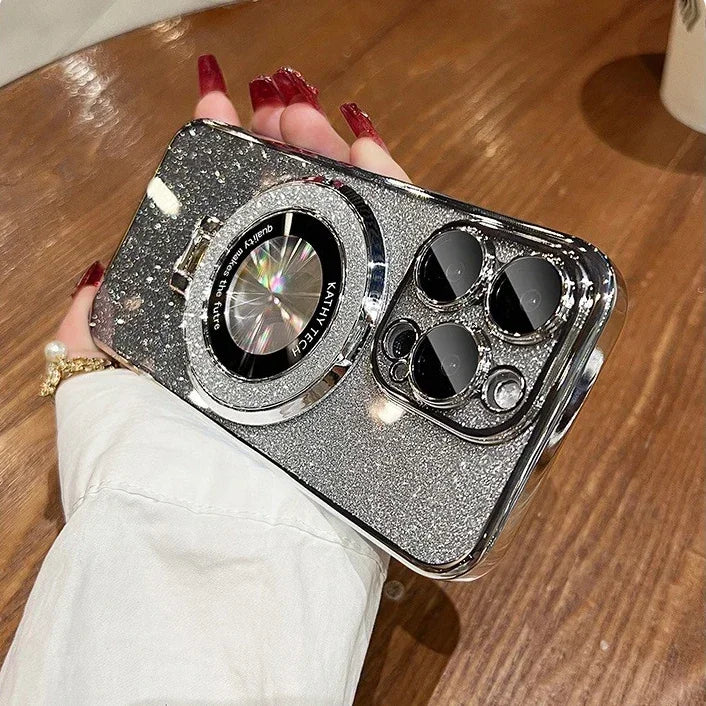 Glitter for Magsafe Bracket Case for iPhone 15 14 13 12 16 17 Pro Max 17 Air 11 16 Plus Magnetic Stand Holder Gradient Cover