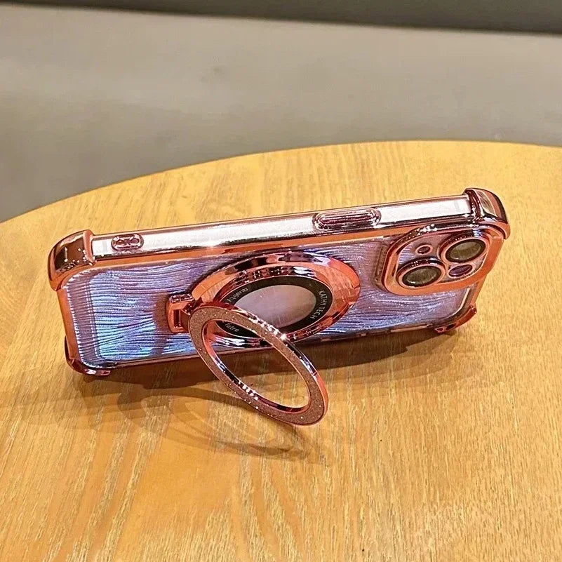 Features: Glitter Water Ripple Magsafe Logo Hole Case Folding Holder Cover