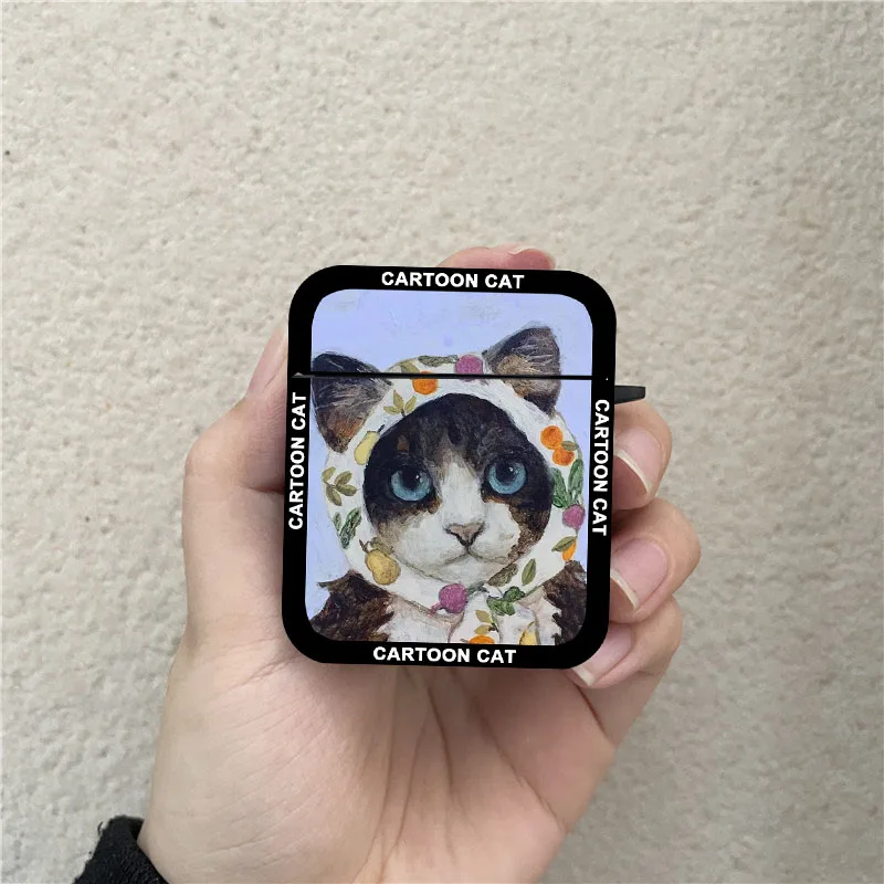 INS Korean Cartoon Oil Painting Cat Earphone Case For Airpods 1 2 3 4 Pro Wireless Headphone Cover For Air Pods Pro2 Accessories