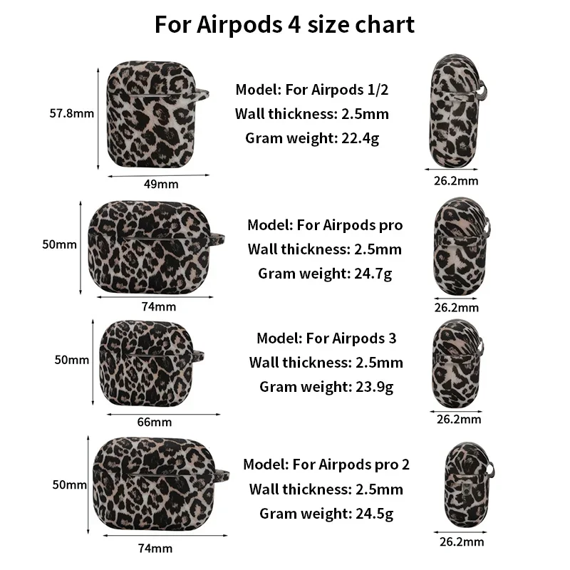 Leopard Print Earphone Case For Airpods Pro 2 Silicone Protective Cover For Apple Airpods 4 1 2 3rd Generation Shell With Hook