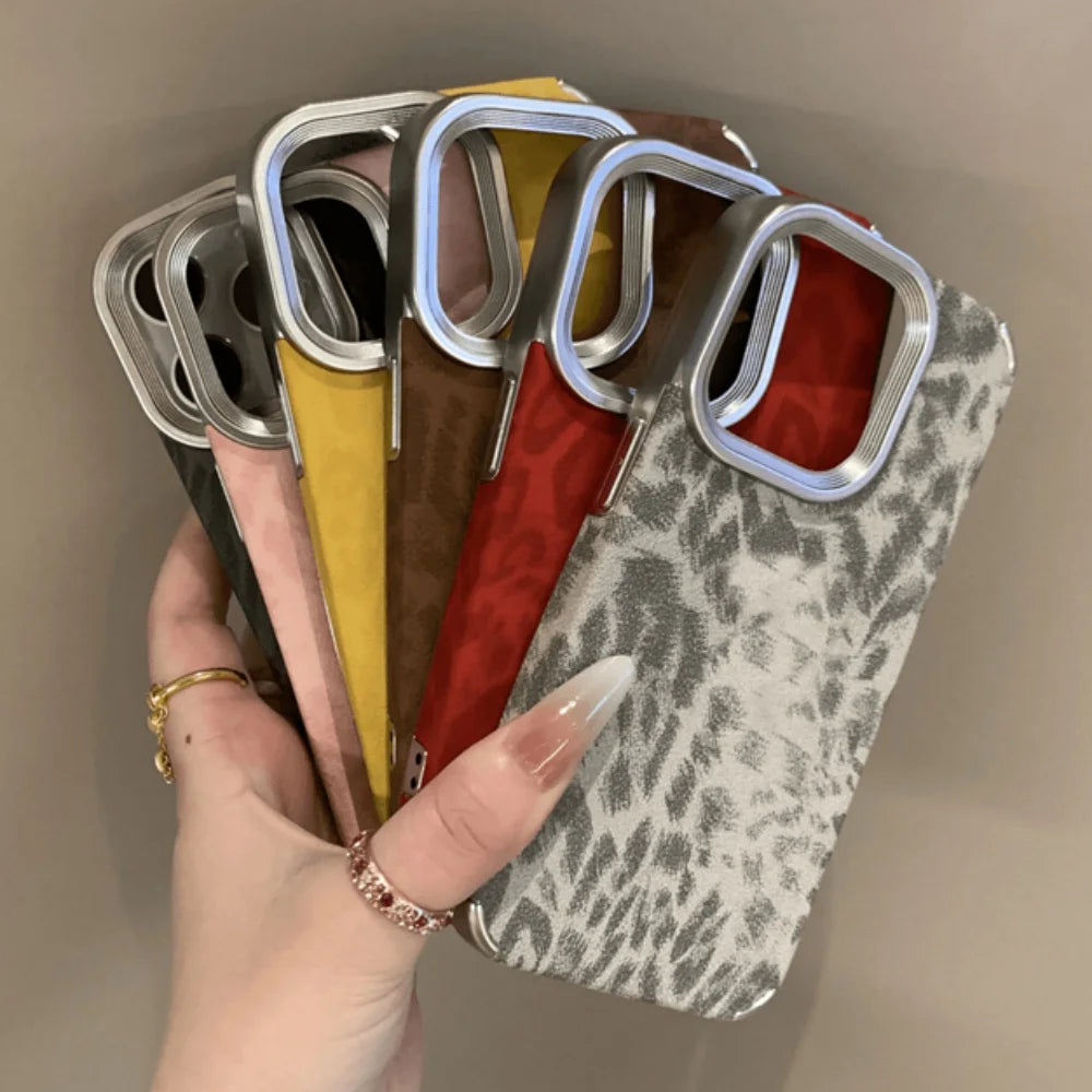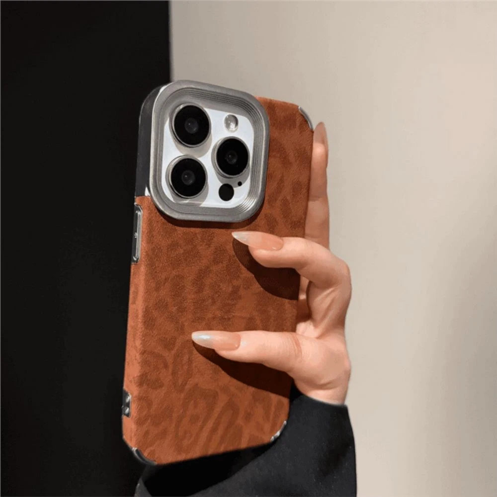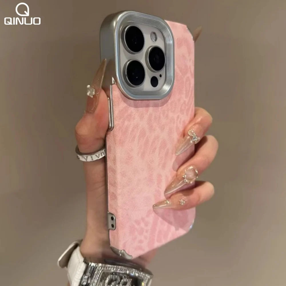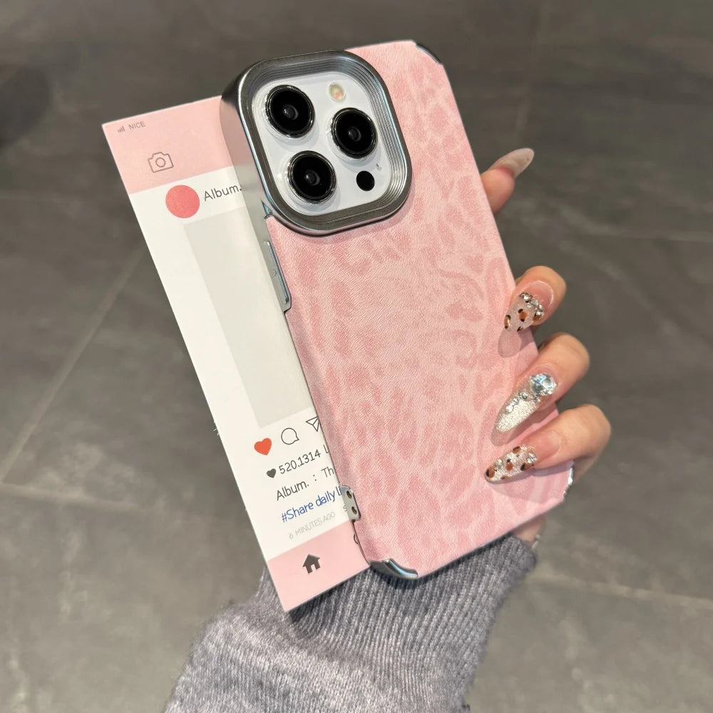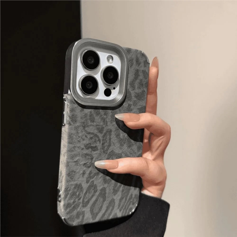 Luxury Cool Leopard Pattern Armor Case For iPhone 16 Pro Max 15 14 Plus 13 12 11 Matte Plating Leather Texture Shockproof Cover