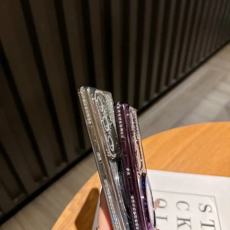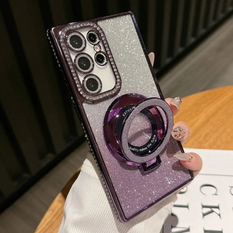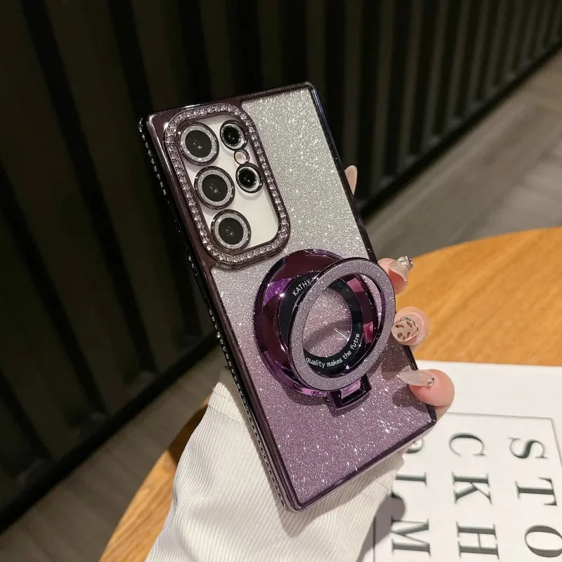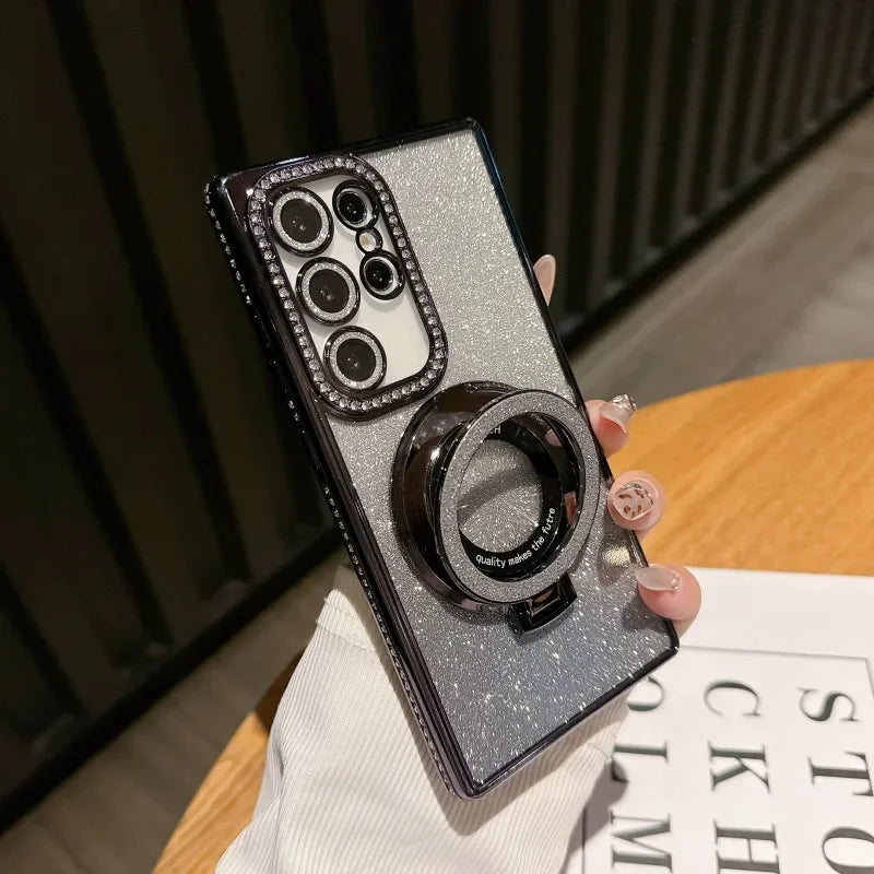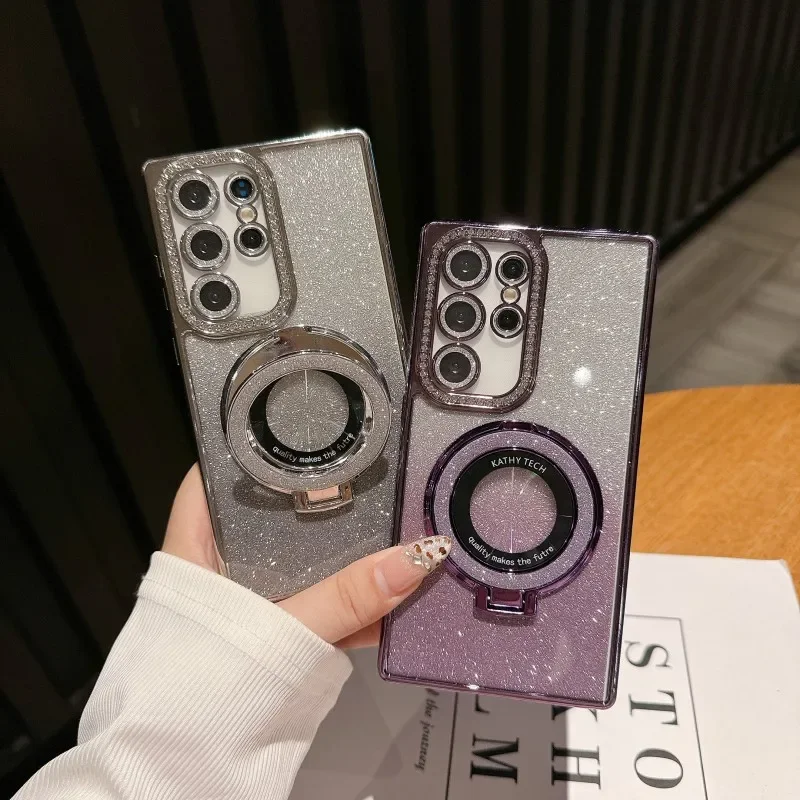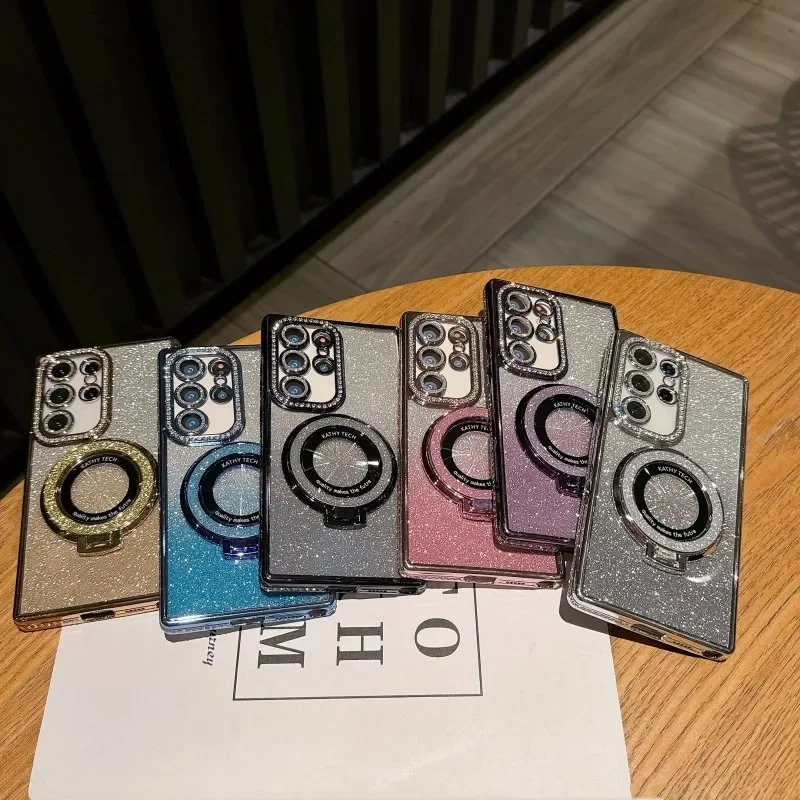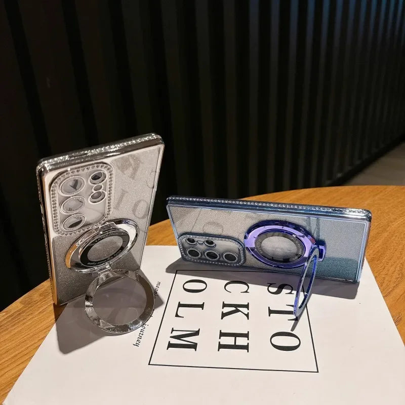 Luxury Magnetic Plating Stand Shockproof Case For Samsung Galaxy S25 S24 S23 S22 Ultra Plus S24 FE Glitter Diamond BacK Cover