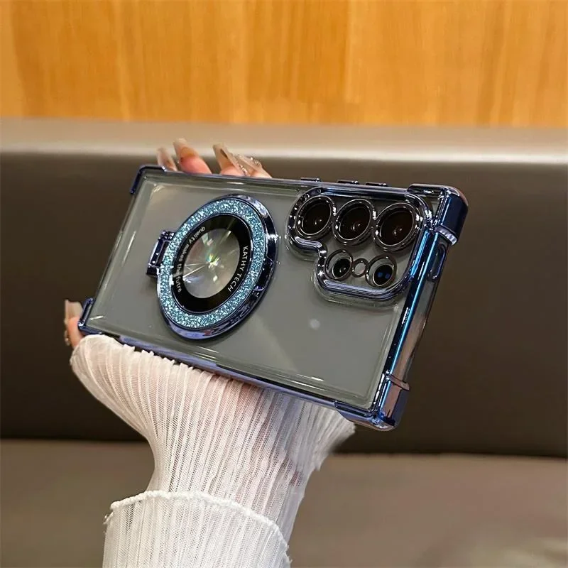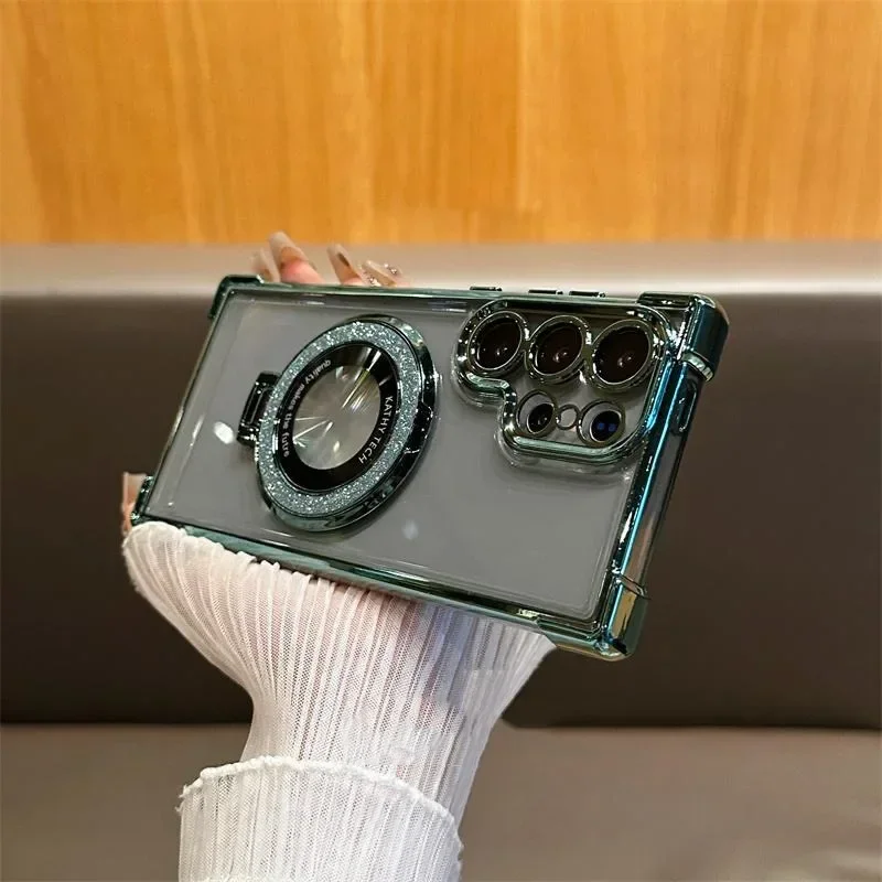 Luxury Magnetic Plating Stand Shockproof Glitter Case for Samsung Galaxy S25 Edge S24 Ultra S23 S22 Plus S21 S20 FE Clear Cover