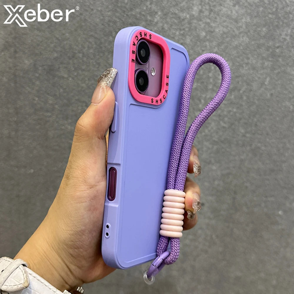 Luxury Wrist Strap Bracelet Lanyard Phone Case For iPhone 15 16 Pro Max 14 13 12 11 X XR XS Collision Color Lens Protector Cover