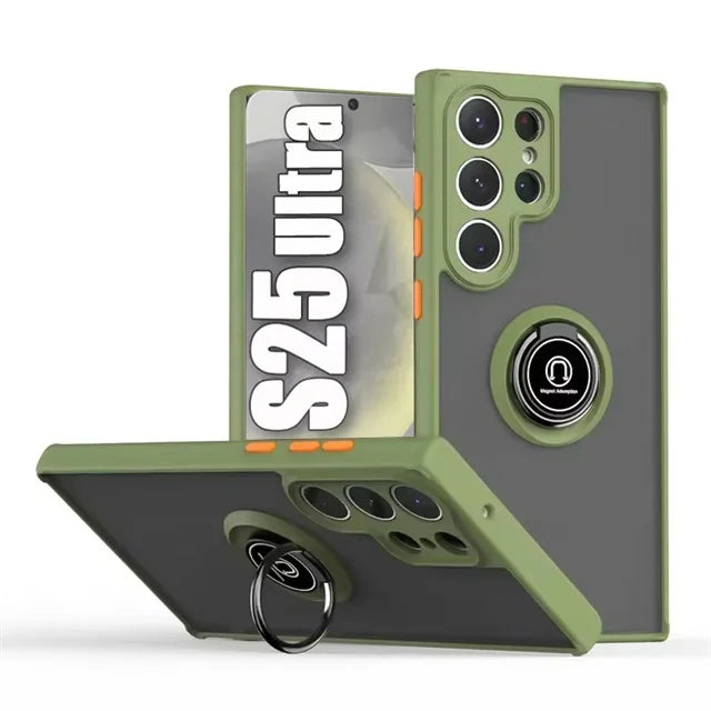 Magnetic Matte Case For Samsung Galaxy S25 S24 S23 S22 S21 S20 Ultra FE 5G S10 S9 Plus Lite Shock Proof Ring Holder Cover Funda