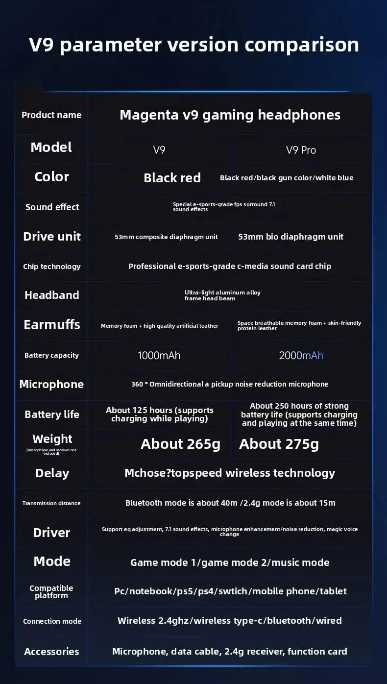 MCHOSE V9 Pro Headset with Microphone Three Mode Bluetooth Wireless Computer PC Gamer Headphones Accessories V9 Pro MCHOSE