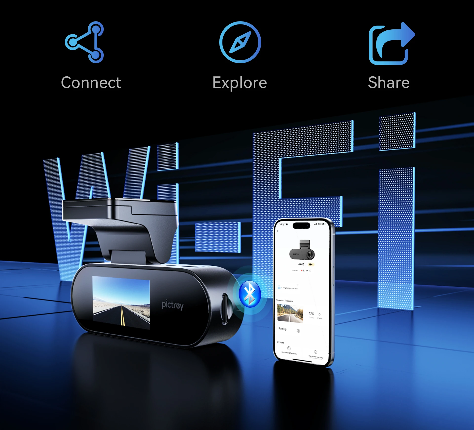 Pictrey A400 4K Dash Cam Built-in ADAS Wi-Fi Dash Car Camera with 1.9'' IPS Screen Support Parking Monito Night Vision Car DVR
