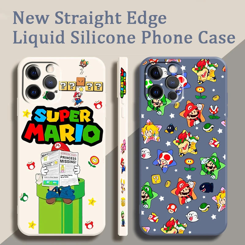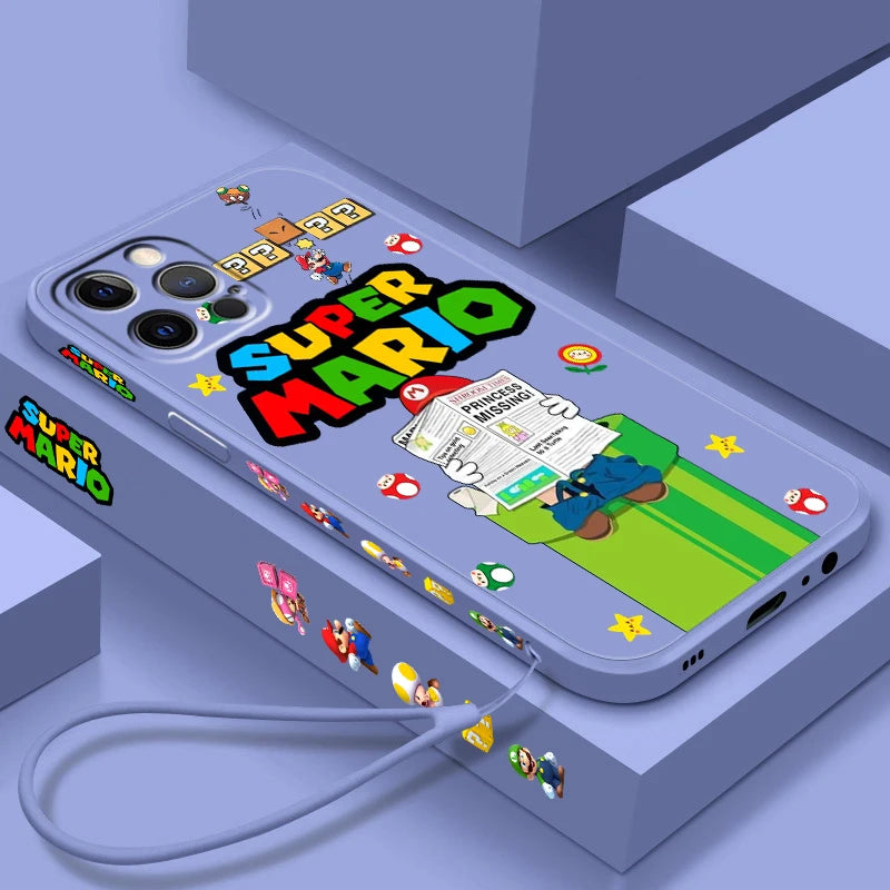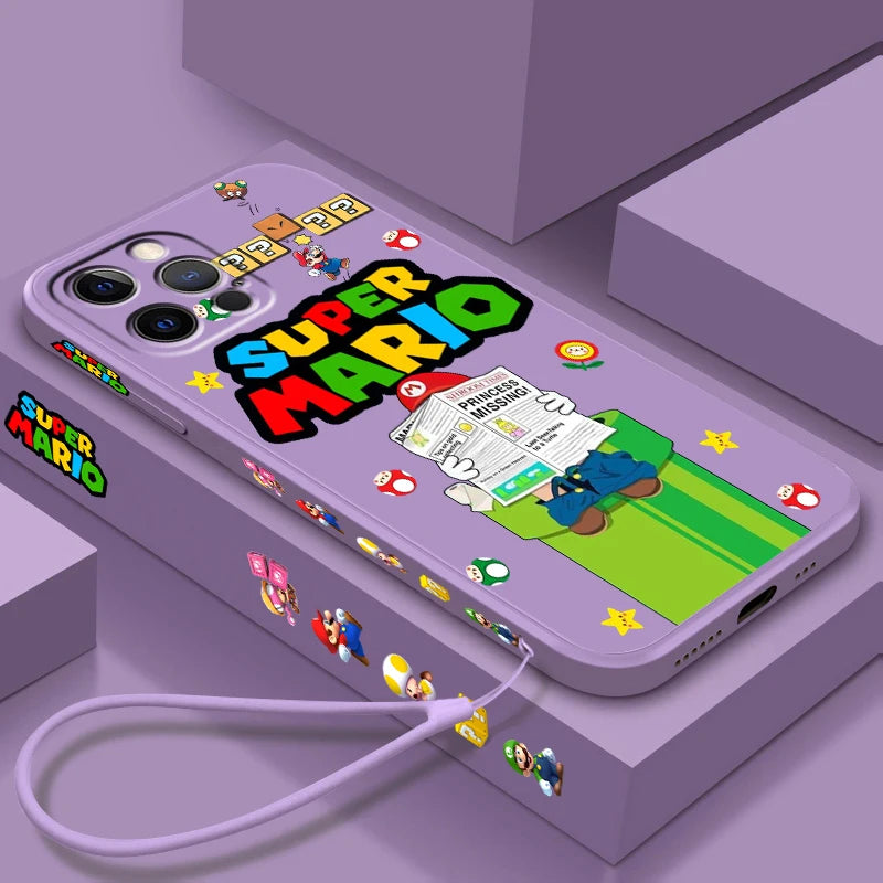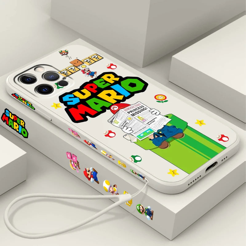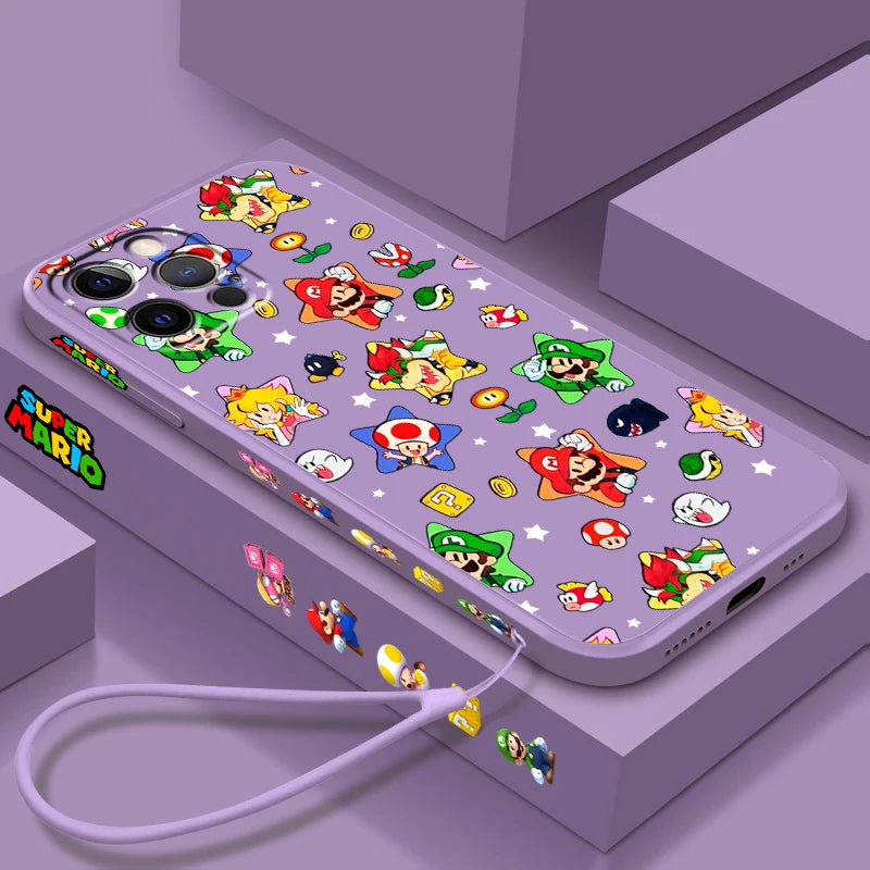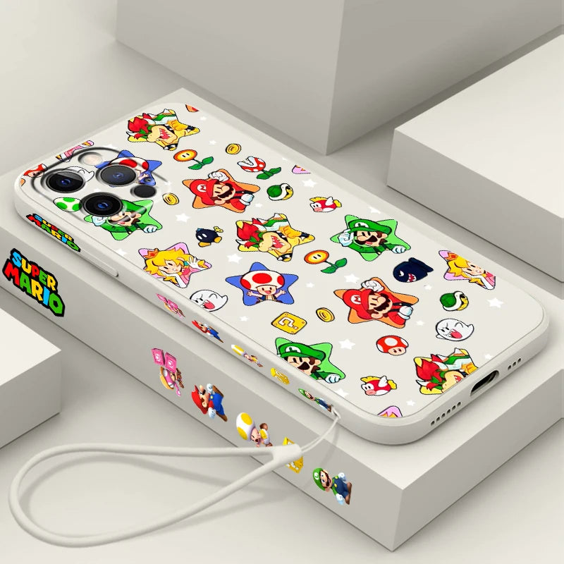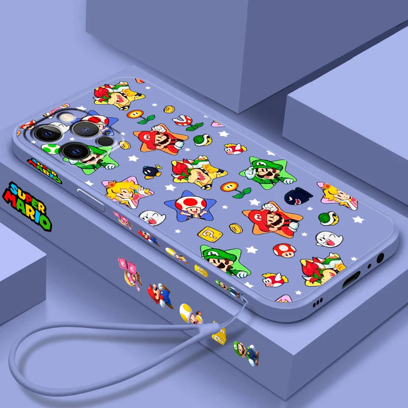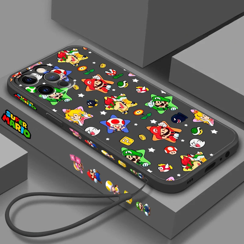 S-Super M-Marios B-Bros Cute Liquid Left Rope For Apple iPhone 15 14 13 12 11 XS XR X 8 7 SE Pro Max Plus Mini Funda Phone Case