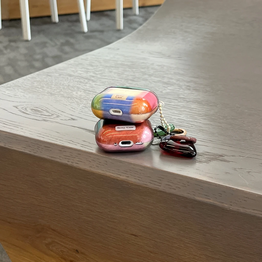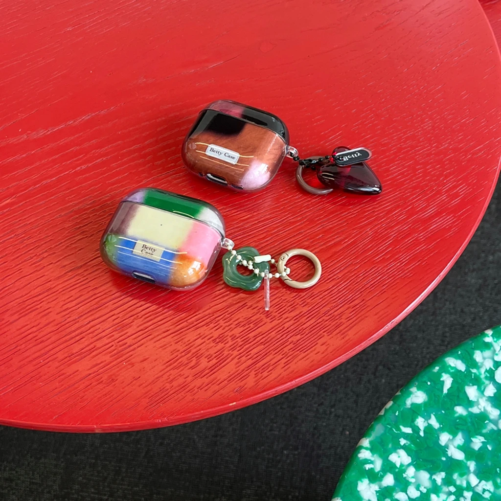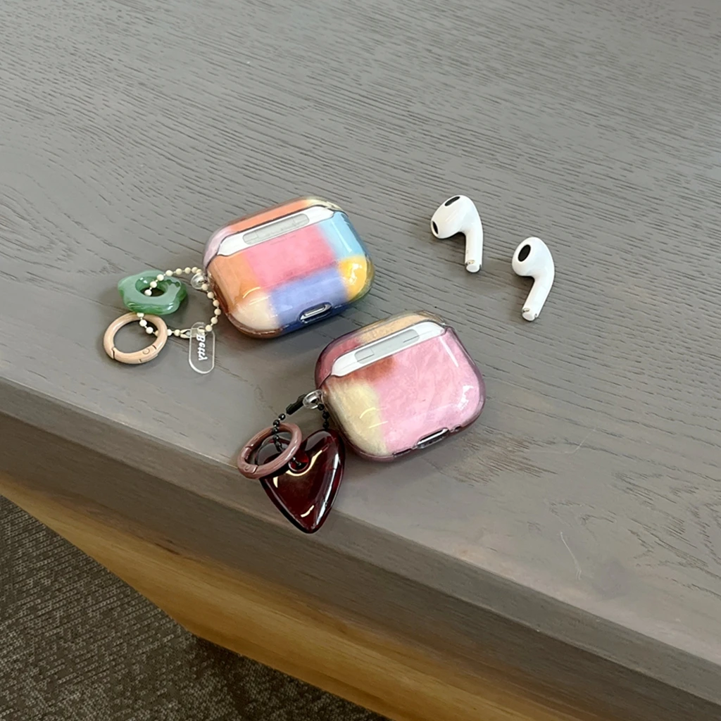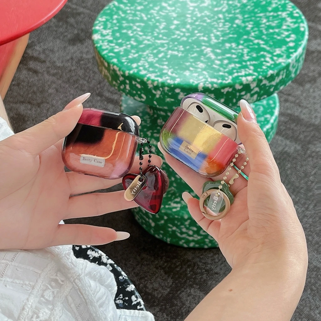Stylish Maillard Collision Color Irregular Pattern Love Heart Flower Pendant Earphone Case Cover for AirPods 1 or 2 3 4 Pro 2