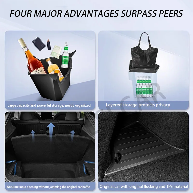 Trunk Organiser Side Storage Box Boot Organiser Flocked TPE Mat Anti-dirty 2025 Car Travel Accessories
