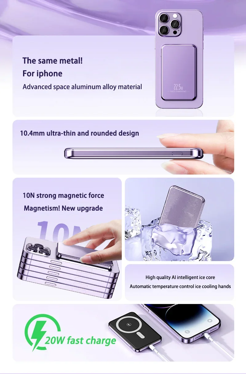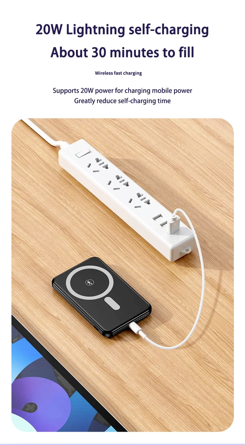 Xiaomi Ultra Slim Power Bank 50000mAh Mac Fast Charge Auxiliary Battery Magnetic Magnet Wireless Charging For IPhone Samsung